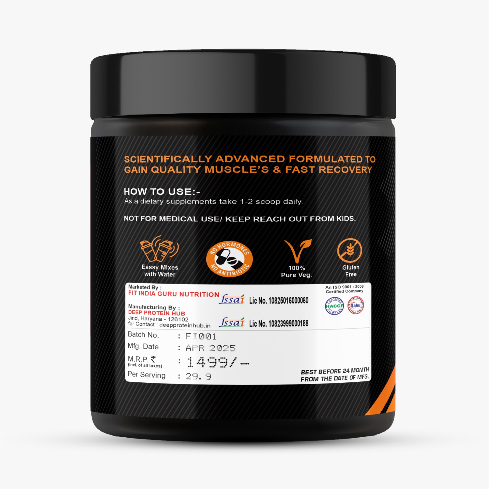 FitIndia Guru Nutrition Glutamine is a premium-grade recovery supplement designed to support muscle repair, reduce fatigue, and enhance endurance after intense workouts.