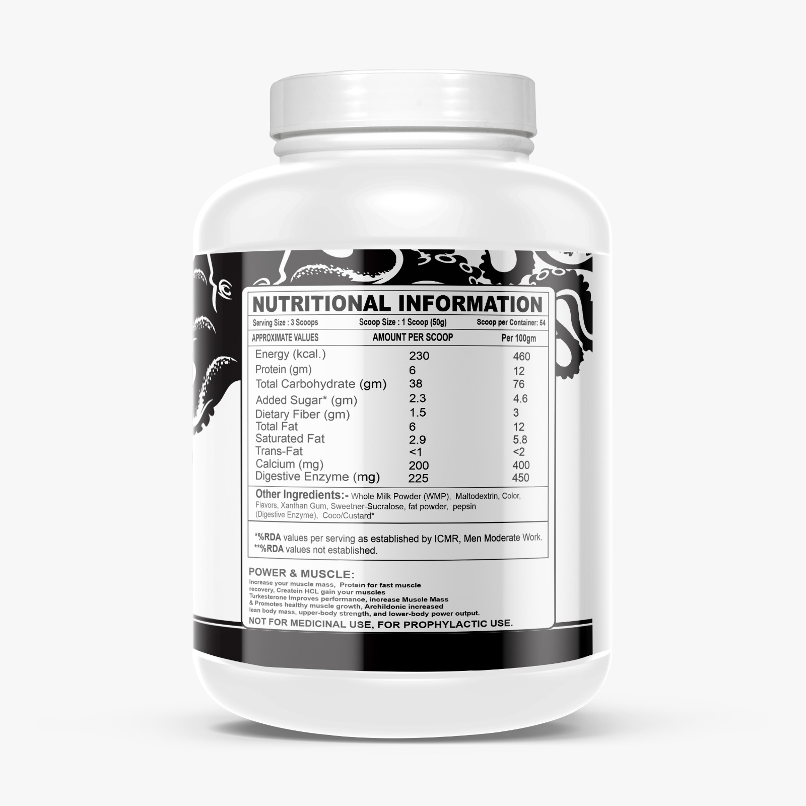 Each scoop offers 230 kcal of clean energy, 6 g of protein, and 38 g of complex carbohydrates, enhanced with digestive enzymes for better nutrient absorption and digestion.
